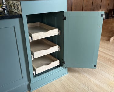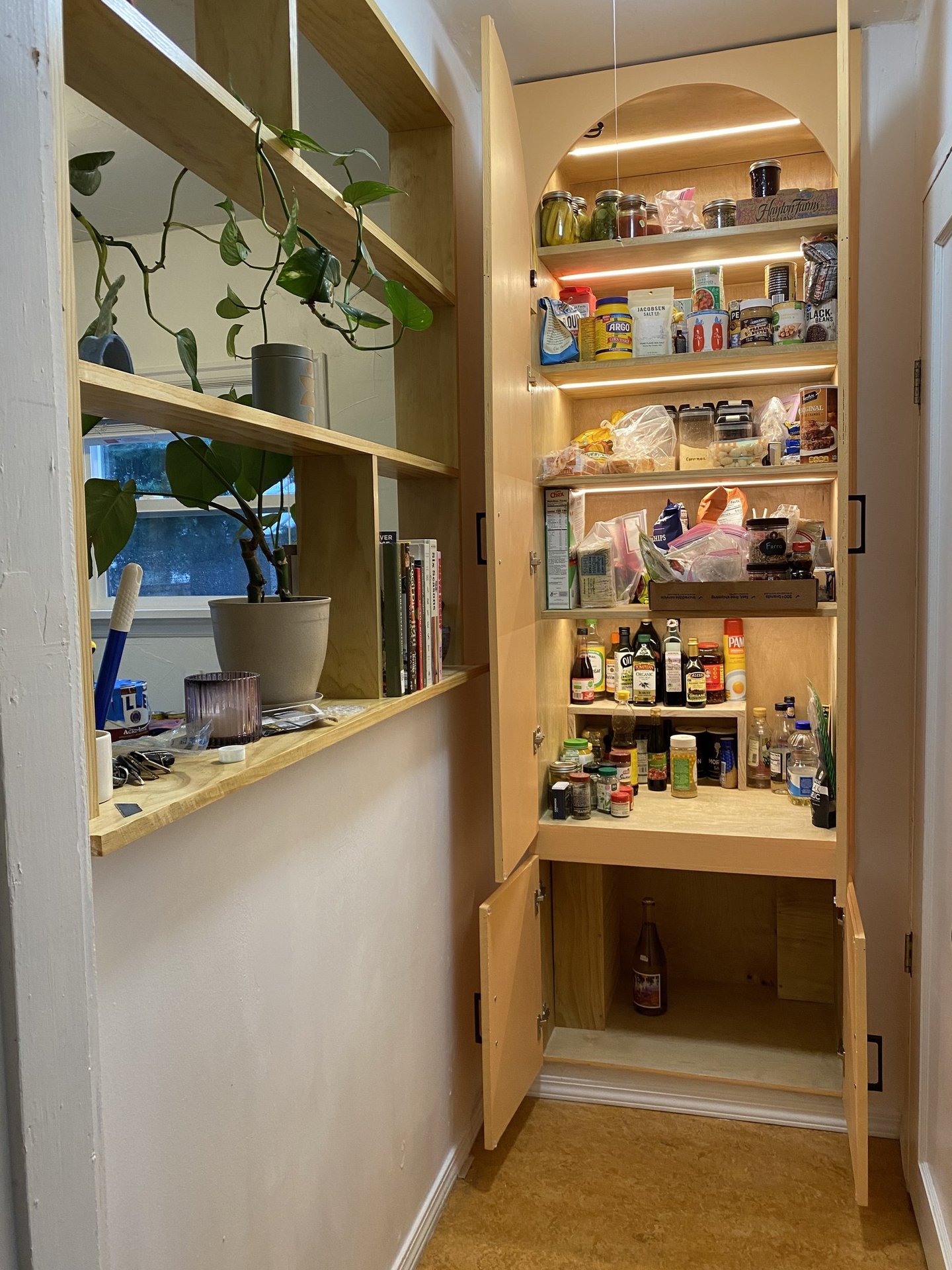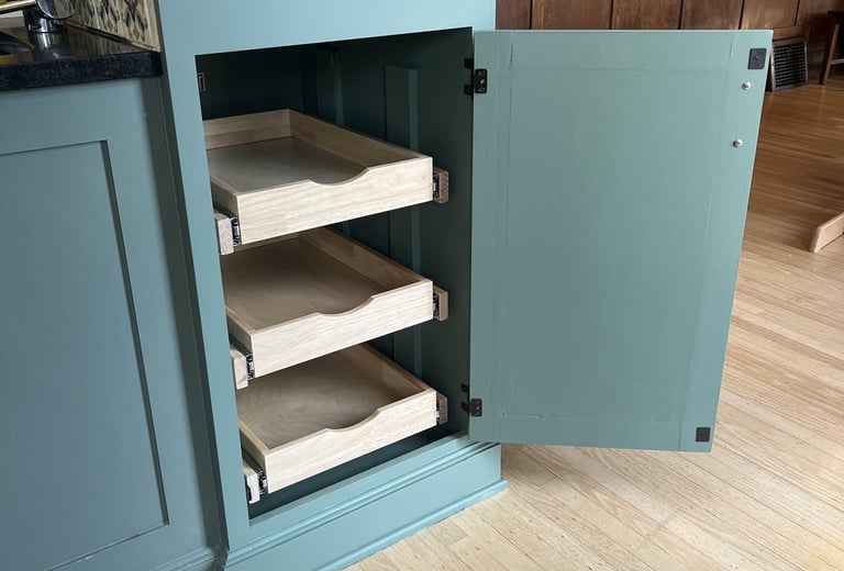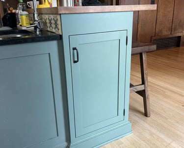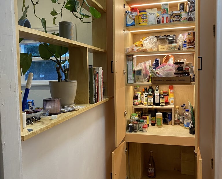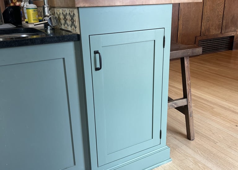 With a baby on the way, this client needed more pantry storage. We spotted an underutilized nook in the kitchen island and transformed it into a built-in cupboard—seamlessly matching the existing cabinetry and paint. Now, they have extra storage without compromising the kitchen’s flow.