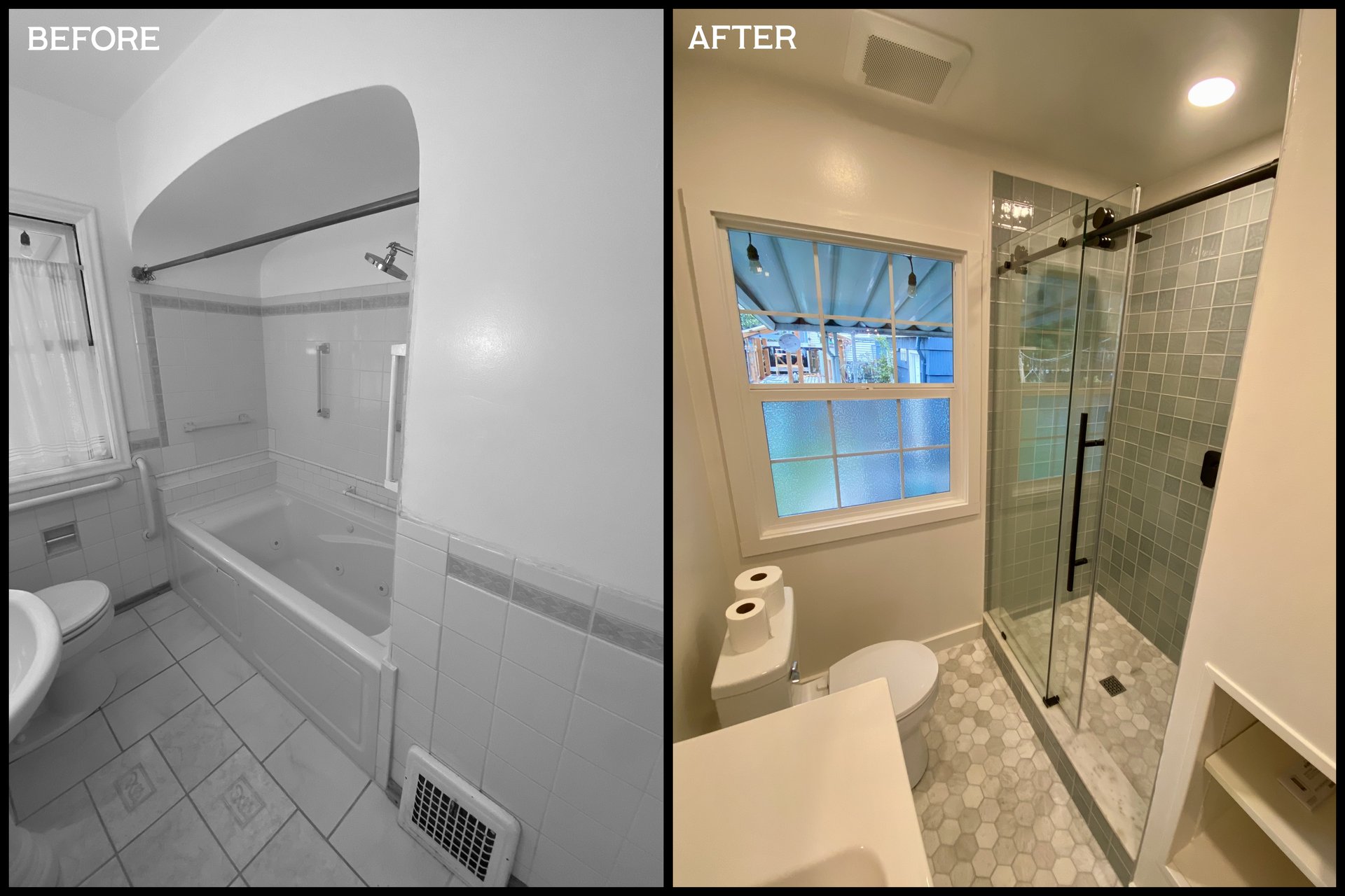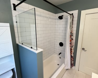 Struggling with poor lighting—especially in the shower—this client wanted a brighter, more inviting bathroom without a full remodel. To keep the project efficient, we kept the existing layout but made impactful upgrades: installing new light fixtures, replacing a full shower wall with a sleek pony wall and glass panel, and updating the vanity and tile. The result? A fresh, modern space with much-improved lighting and style.